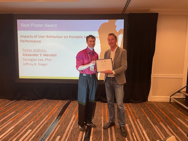 Figure 1: Best poster award, Alexander Y. Mendell (left) & Arnold Janssens (right) at the 45th AIVC - ASHRAE IEQ joint conference